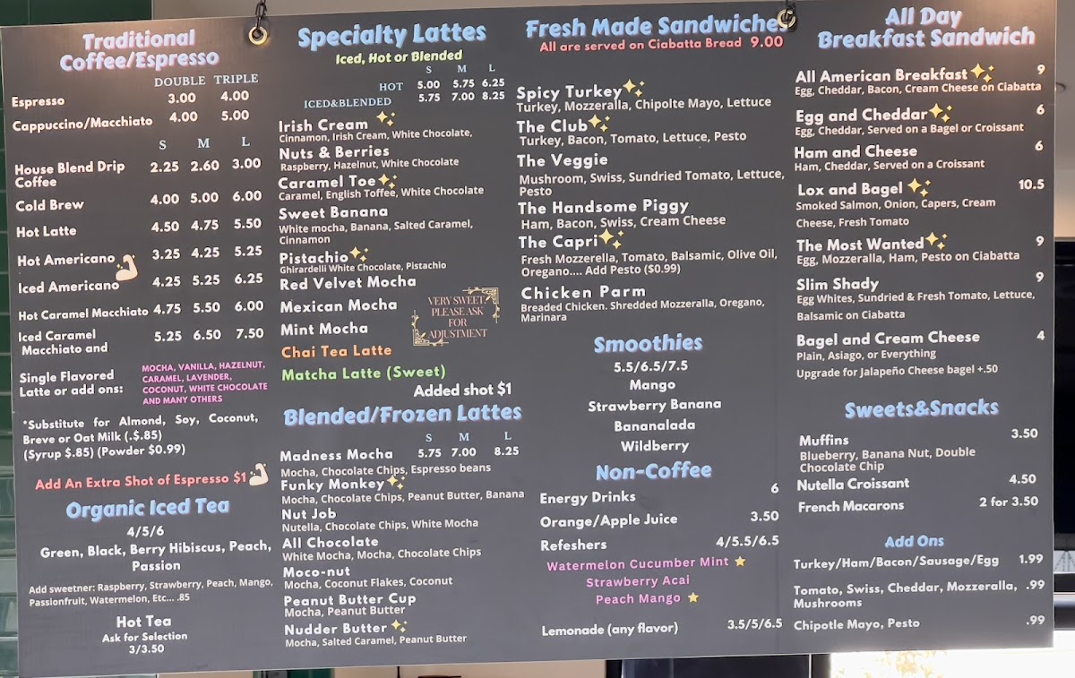 The menu boasts a range of unique beverages, with highlights like the Nudder Butter and the crowd-favorite Banana Latte, which has garnered rave reviews for its rich flavor and perfect sweetness. Breakfast options are sure to please, including the mouthwatering All-American Breakfast Sandwich and the classic Lox and Bagel. Customers love the variety of drinks available beyond coffee, from iced teas to coconut waters.